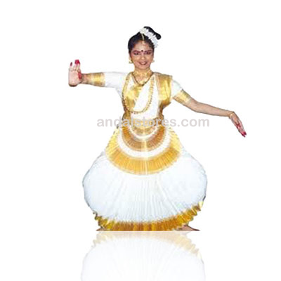This is the peculiar dance from of kerala. performed by a solo female dancer. The costume color is white with the golden border. The skirt is ully fleeted from front to back.